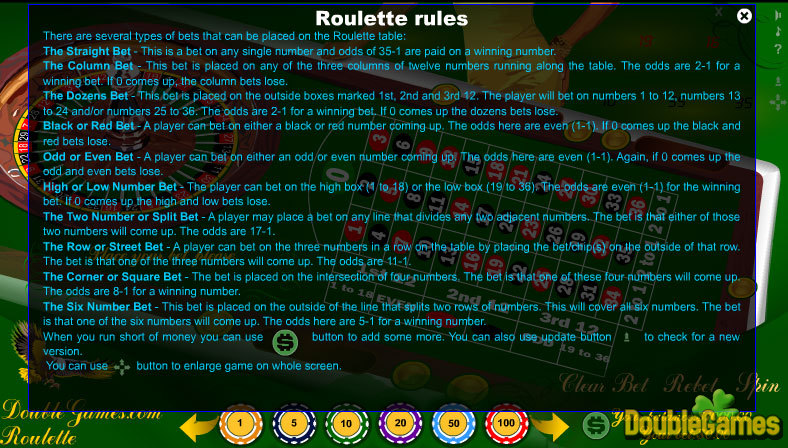 عندما قمت بتحميل الروليت الكلاسيكيه يبدو انك في عالم جديد تماما. ومن مشرق والكامل للخطر ، والخطر العاطفه. هذه اللحظة كنت افكر في بداية الطريق الى كسب الكثير من المال. انت ترى شيء واسمع أي شيء من حولك ، لأنك استوعبت تماما مع اللعبة! الروليت يسحر اللاعب في مشهد أ الكيس دائري. ليس هناك ما هو اكثر اهمية في العالم لانك من عملية اللعب وكسب المال. هذه اللعبة تتيح السرور ويعطي pungent المشاعر الى كل لاعب ، واذا كنت تفضل الحظ معها الابتسامه ، انك ستصبح محظوظ مع الفائز. اللعبة نفسها مع الضربات لكم الرسومات وتصميم. في كازينونا نقدم لكم طيب الاستماع الى الموسيقى وسيشارك في الروليت الكلاسيكيه يشعر مجيد النصر!