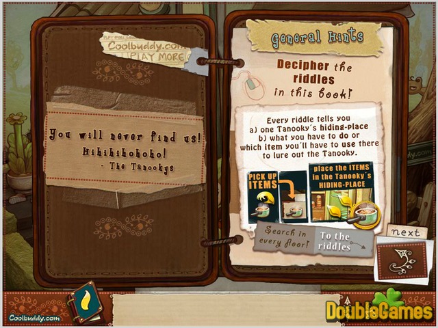 لعب جديدة مثيرة لعبة Tanooky Tracks والغوص في عالم المجهول. Tanookys هي أرواح عوب الذين يحبون posess أشياء تشبه شخصيات فريدة من نوعها في معظم. تلعب لعبة استخدام تلميحات في hintbook للعثور على مخابئ كل اثني عشر منهم. كل Tanooky ديها ميزات أو الميول التي يمكن استخدامها لجذب بها بعض. تتمتع رسومات رائعة مرسومة باليد، والموسيقى جذاب ووالكثير من الحيرة الخير! حظا طيبا وفقك الله!